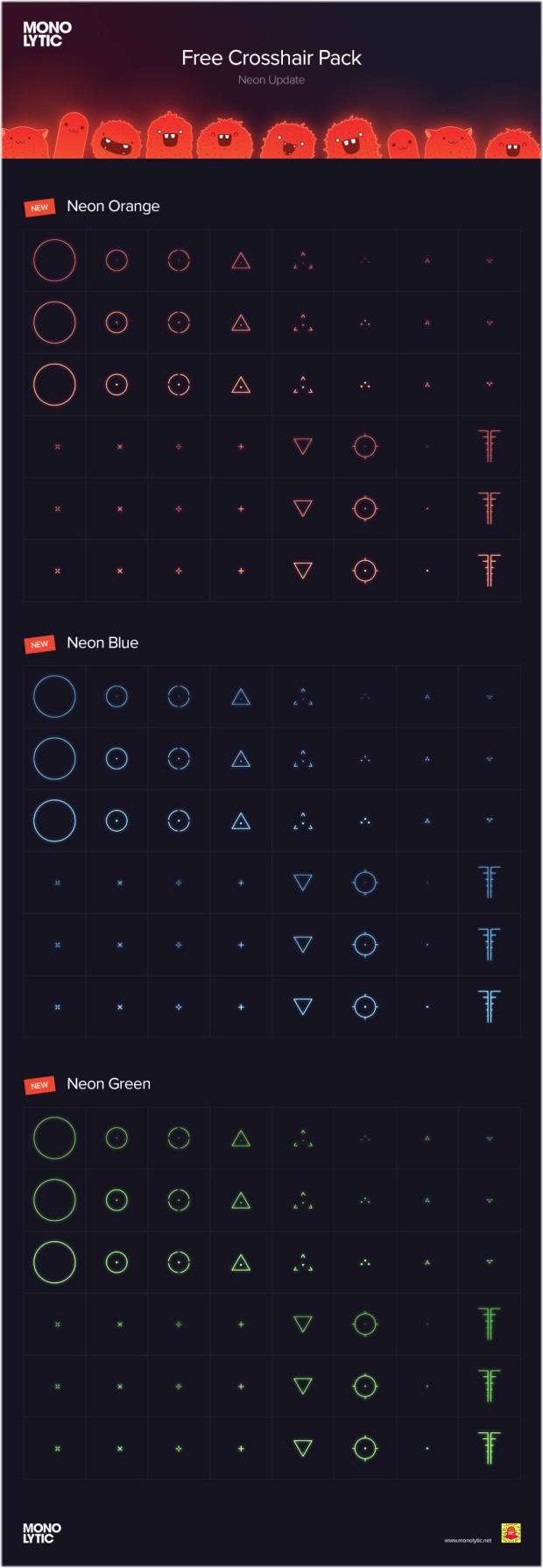 A new free ‘neon version’ from the previous free Basic Crosshair Pack by monolytic 😀 For download, head over Gumroad. For comments, head over their Epic thread 🙂