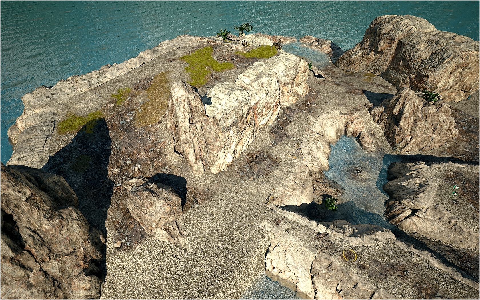 Still, there is not enough rock meshes for my taste so it’s very limiting in term of creation. Beside, there are odd lighting black shadows that appear out of nowhere after lightning build 😦 I’ve made all I could to get rid of them without success. Since the pack is free, I won’t complain.