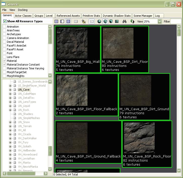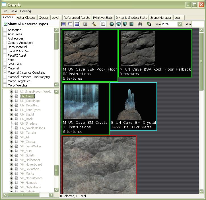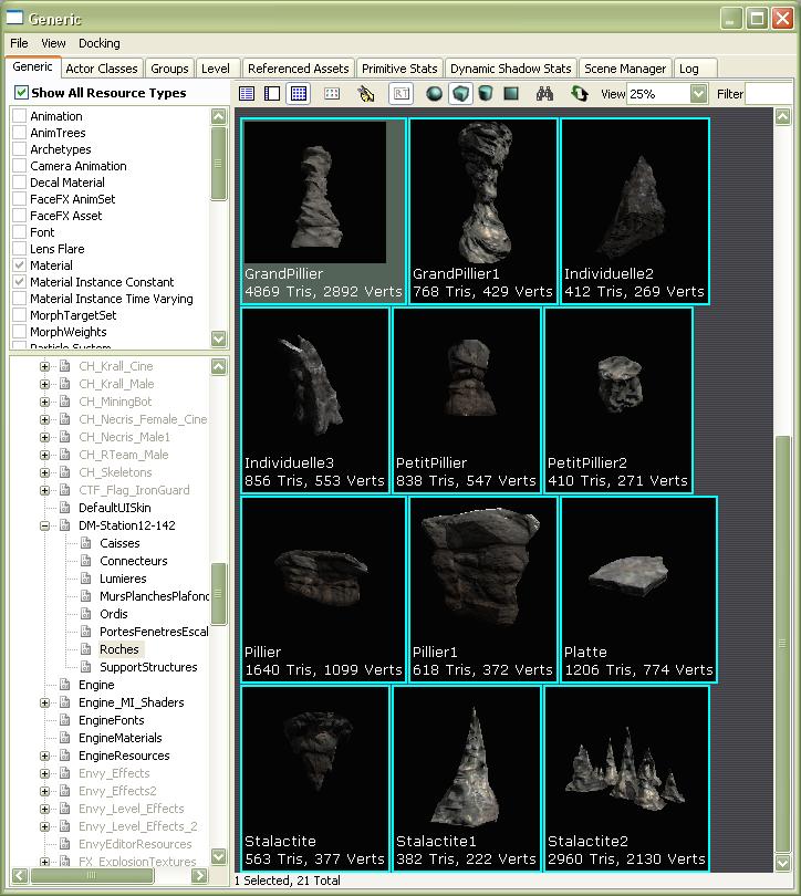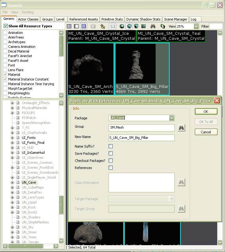 6. Return to the Generic tab, in the UN_Cave package select an asset in the window to the right & know by clicking with the right button of your mouse, in the contextual menu, the duplicate option should be available.