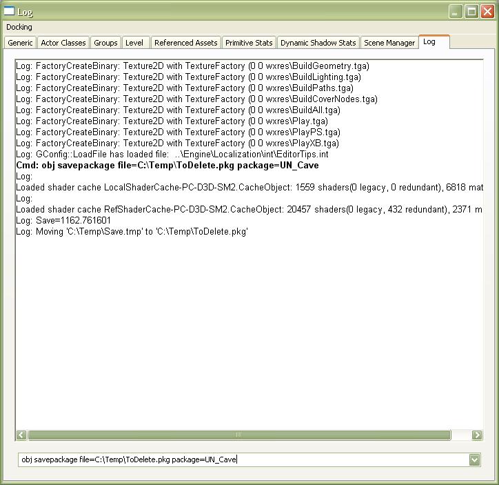 obj savepackage file=C:\Temp\ToDelete.pkg package=UN_Cave